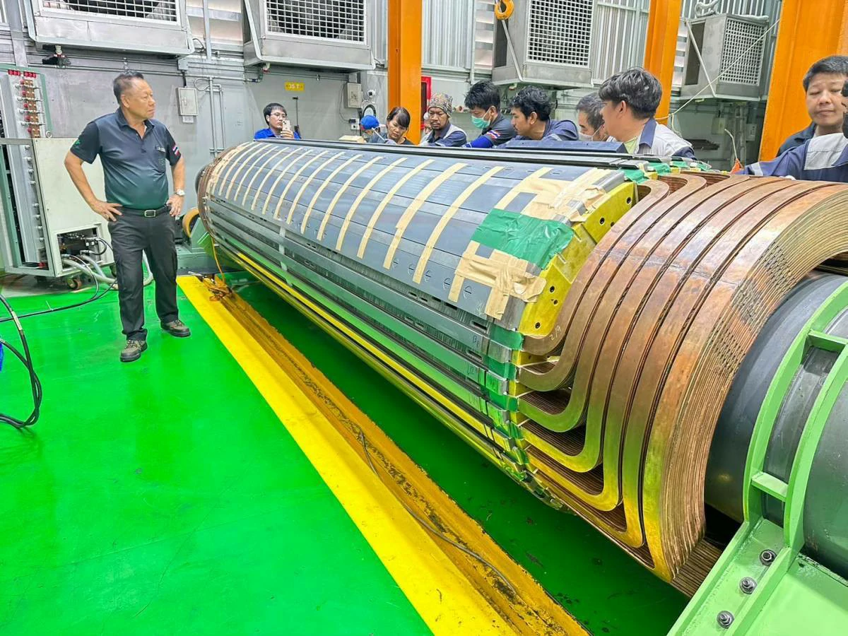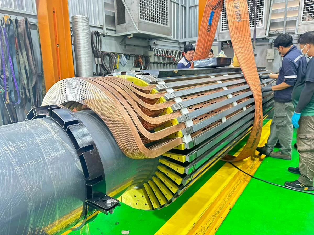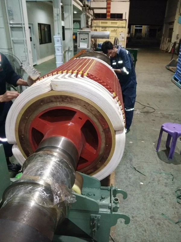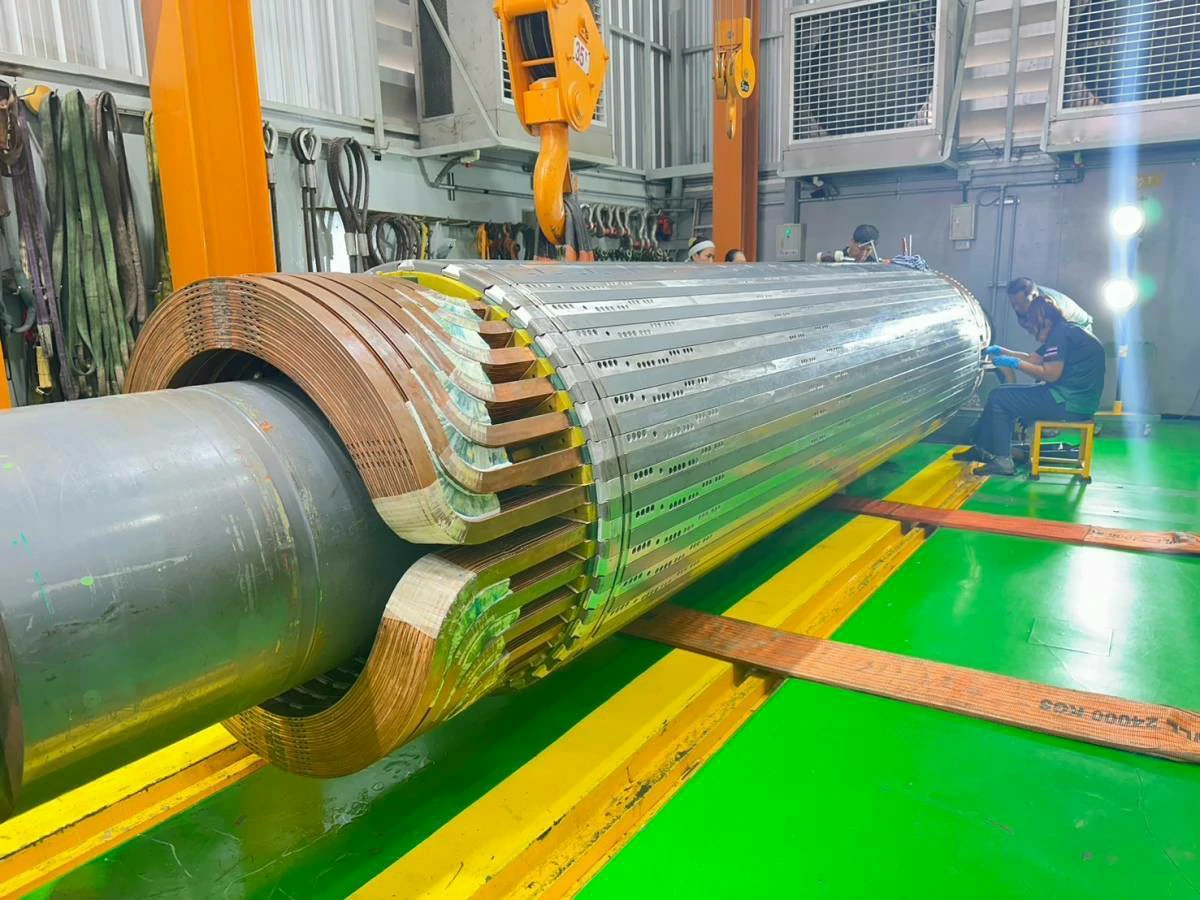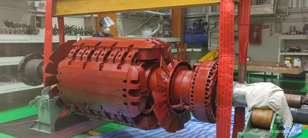 ทำการทดสอบทางไฟฟ้า เช่น Insulation Resistance, Surge Test เพื่อประเมินสภาพและบันทึกข้อมูลทางวิศวกรรมของโรเตอร์เดิม ถอดชิ้นส่วน Retaining Rings และขดลวดเก่าออกอย่างระมัดระวังโดยทีมช่างผู้ชำนาญ เพื่อรักษาโครงสร้างของแกนโรเตอร์ (จุดแข็งของเรา) ผลิตขดลวด Main Field Coil ชุดใหม่ในโรงงานของเรา ด้วยทองแดงและฉนวนคุณภาพสูง ทำให้ได้คอยล์ที่มีคุณสมบัติตรงตามสเปคหรือดีกว่าเดิม ทำความสะอาดแกนโรเตอร์และร่องสล็อต ติดตั้งฉนวนใหม่ และติดตั้งขดลวดที่ผลิตใหม่ลงบนแกนโรเตอร์อย่างแม่นยำ