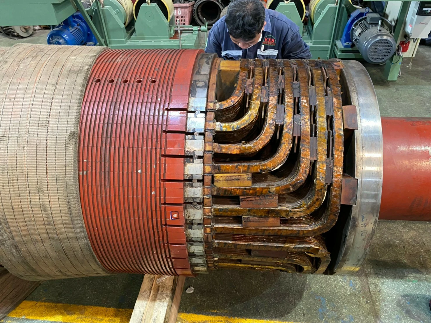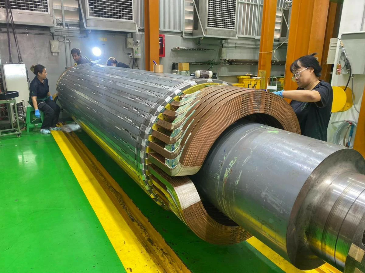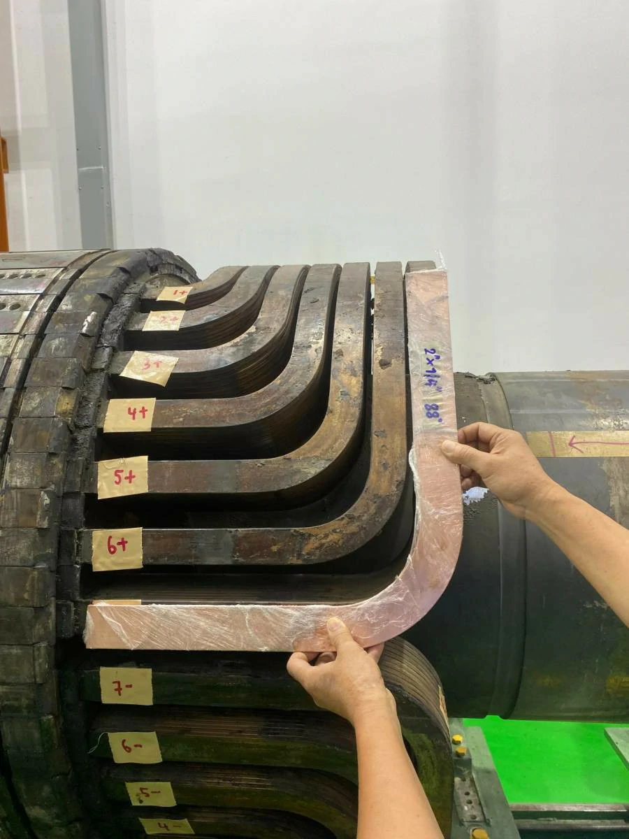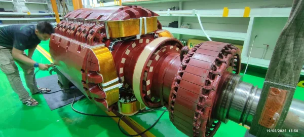 ทำการทดสอบทางไฟฟ้า เช่น Insulation Resistance, Surge Test เพื่อประเมินสภาพและบันทึกข้อมูลทางวิศวกรรมของโรเตอร์เดิม ถอดชิ้นส่วน Retaining Rings และขดลวดเก่าออกอย่างระมัดระวังโดยทีมช่างผู้ชำนาญ เพื่อรักษาโครงสร้างของแกนโรเตอร์ (จุดแข็งของเรา) ผลิตขดลวด Main Field Coil ชุดใหม่ในโรงงานของเรา ด้วยทองแดงและฉนวนคุณภาพสูง ทำให้ได้คอยล์ที่มีคุณสมบัติตรงตามสเปคหรือดีกว่าเดิม ทำความสะอาดแกนโรเตอร์และร่องสล็อต ติดตั้งฉนวนใหม่ และติดตั้งขดลวดที่ผลิตใหม่ลงบนแกนโรเตอร์อย่างแม่นยำ
